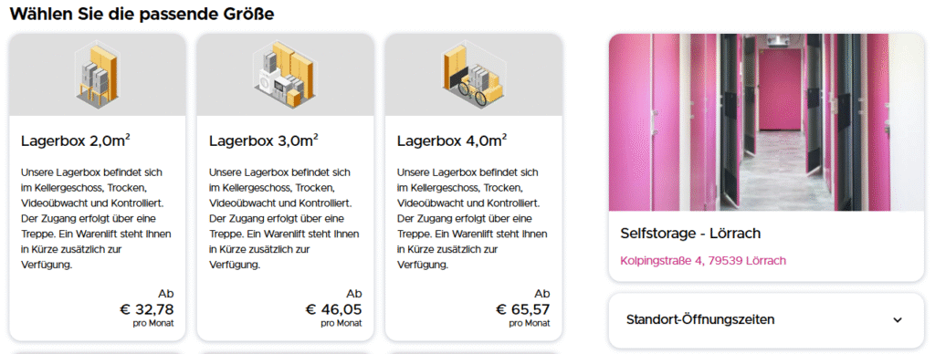 Ob kurzfristig oder langfristig – mit nur wenigen Schritten sichern Sie sich Ihre persönliche Selfstorage-Box. Transparent, unkompliziert und komplett digital.